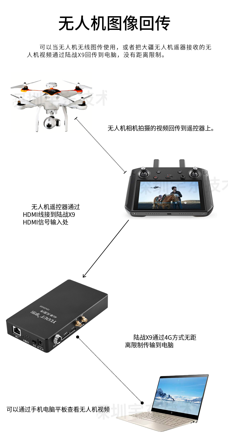 陸戰(zhàn)X9是采用 H.265 編碼技術(shù),兼容 H.264,低延遲,通過4G把HDMI視頻信號(hào)傳輸?shù)街辈ブ行?、指揮部或監(jiān)控中心。內(nèi)置電池,北斗/GPS定位系統(tǒng),支持雙向語音對(duì)講,廣泛應(yīng)用在公安、武警、消防、人防、近海營救、電力、水利、地震、礦山野外施工作業(yè)、石油、化工、建筑、碼頭、檢驗(yàn)檢疫、城市交通、高速公路監(jiān)管等高清晰視頻應(yīng)急指揮行業(yè)。尤其適用無人機(jī)高清圖傳和微波高清圖傳,以及 4G 單兵圖傳。