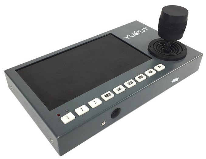 YD-KZ7001-DS多功能車載鍵盤顯示器是與變速智能云臺、解碼器、升降桿等終端接收器配套的產品。鍵盤顯示器內置7英寸工業顯示屏,可接入MDVR或者MNVR,硬盤錄像機等,解碼VGA和AV信號,鍵盤顯示器的控制總線與接收器之間采用EIA/RS-485電氣接口。在不加總線驅動的情況下,一臺鍵盤可控制多路云臺、升降桿或解碼器,鍵盤顯示器與接收器的最大通信距離達1Km。同時,利用內置的控制鍵盤可方便地對變速云臺攝像機與升降桿進行控制,還可直接控制終端解碼器,實現對攝像機、云臺、鏡頭、燈光、雨刮、升降桿等前端設備的控制。