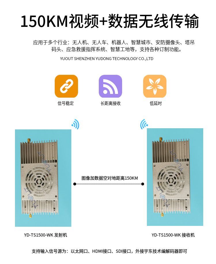 YD-TS1500-WK是圖數(shù)一體無(wú)線發(fā)射機(jī),內(nèi)置雙向OFDM無(wú)線鏈路,支持單向無(wú)線視頻發(fā)射、雙向無(wú)線語(yǔ)音傳輸、雙向無(wú)線網(wǎng)絡(luò)透?jìng)鳌㈦p向無(wú)線串口透?jìng)鳌?br />